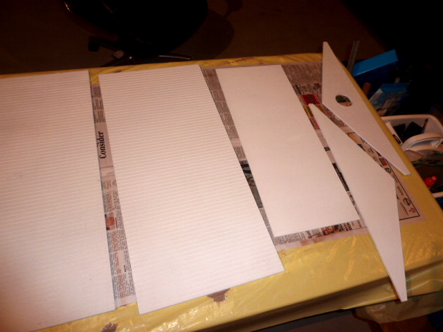 Before starting to paint, I had to assemble the room dividers together. Each room divider was made up of three pieces that had to be glued together. Now the doorways from room to room can be seen.